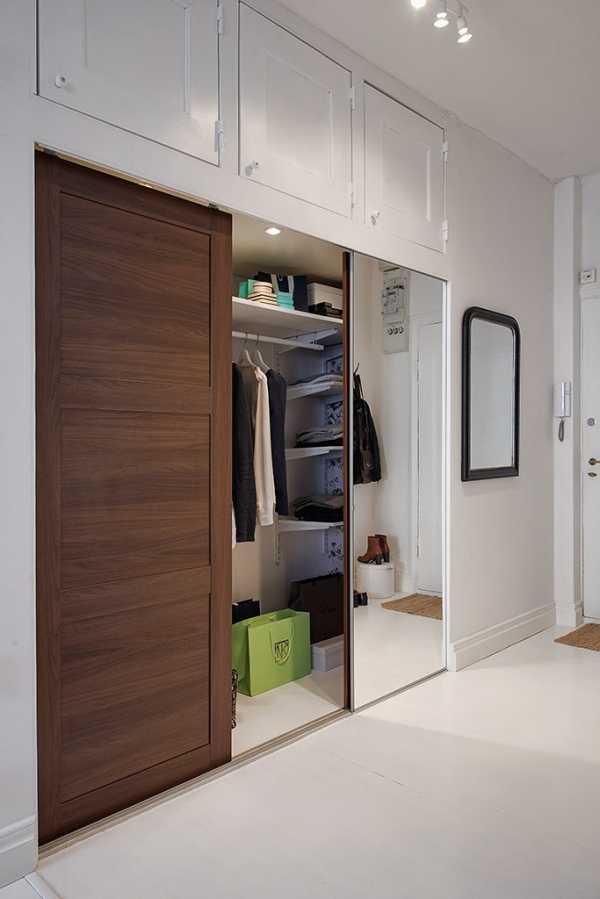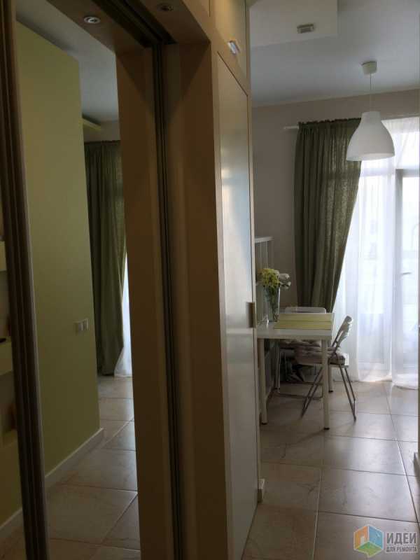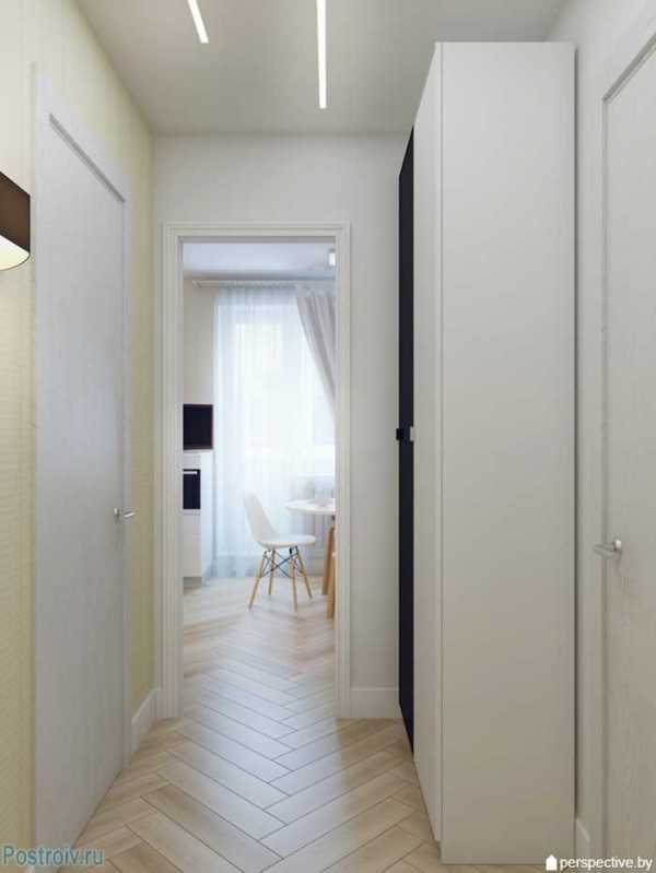 Недорогой и светлый дизайн квартиры 36 кв.м начинается с прихожей.