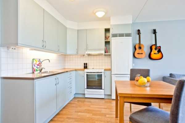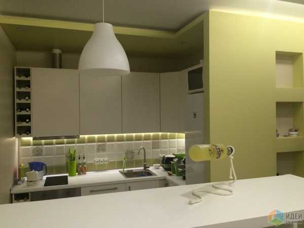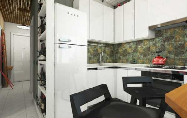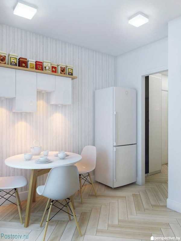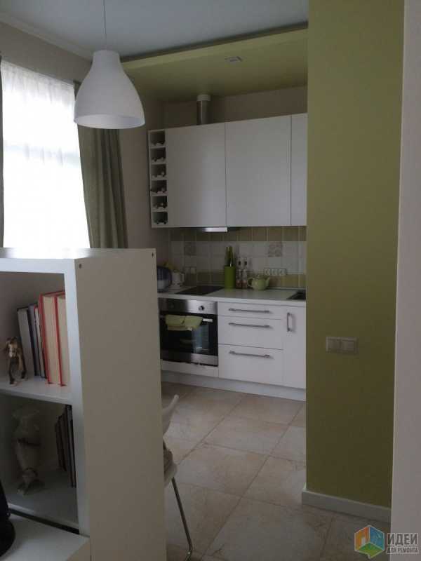 Дизайн светлой кухни в однокомнатной квартире 36 кв. м. Фото