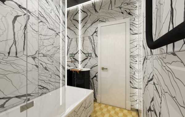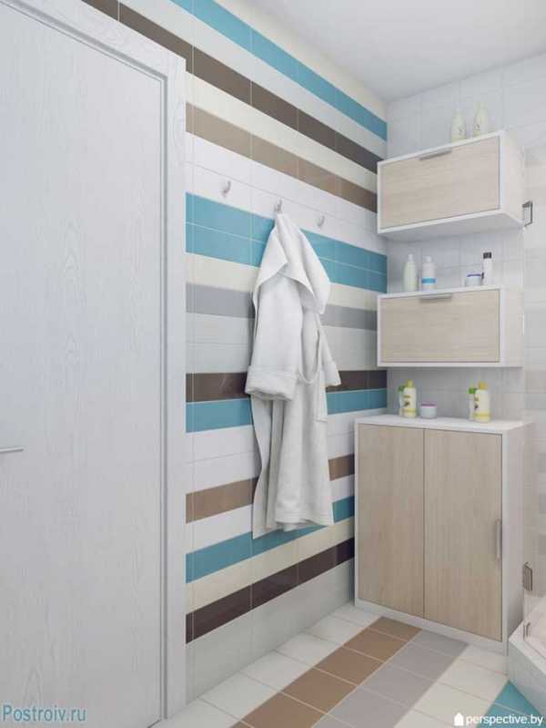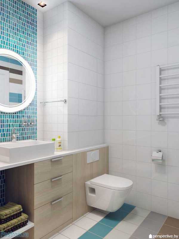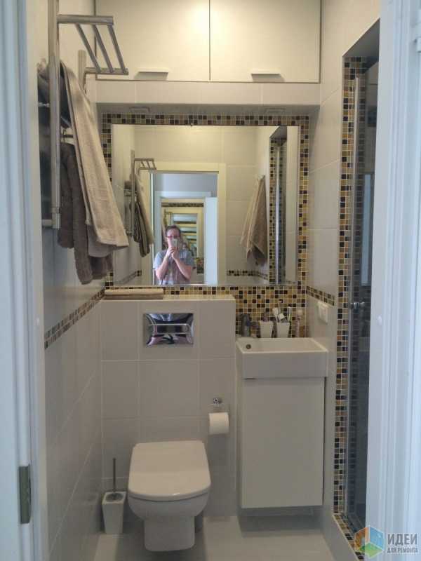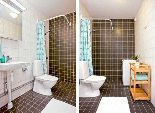Как правило, санузел в подобных квартирах совместный. Чтобы в нем не казалось тесно, лучше поменять ванну на душевую кабину. По статистике, душ люди посещают куда чаще ванны. Цветовой фон ванной комнаты может быть разным, от нейтрального — до яркого.