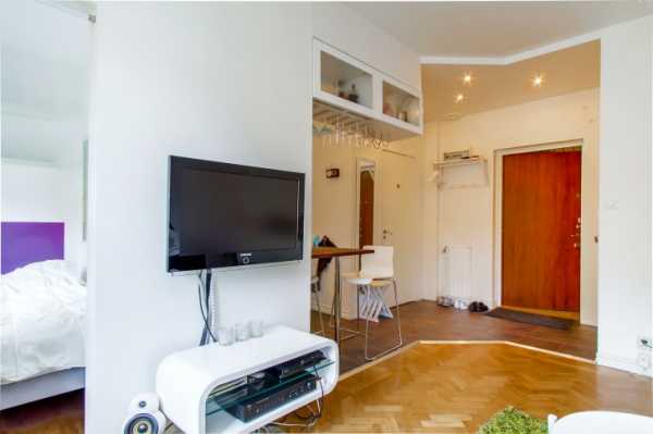 - Апартаменты-студия – сегодня это современно и модно. Фактически это одна большая территория без перегородок, на которой удобно проживать молодой паре. Если на 36 квадратных метрах планирует проживать один человек, то целесообразно задуматься о переделывании обычной квартиры в студию.