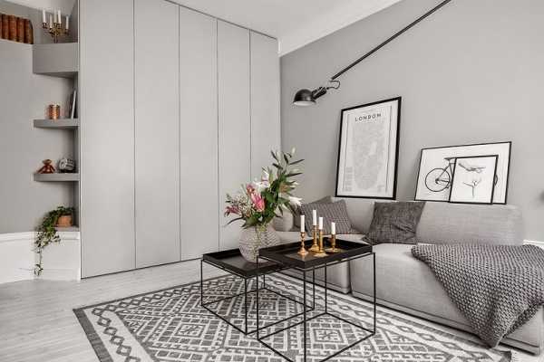 Яркий пример скандинавского дизайна, лаконичного, но в то же время, стильного и выверенного до мелочей. Пространство этой квартиры оформлено преимущественно в серых тонах с добавлением черных и шоколадных акцентов. Но живые растения и эффектные декоративные аксессуары делают помещение теплым и обжитым.