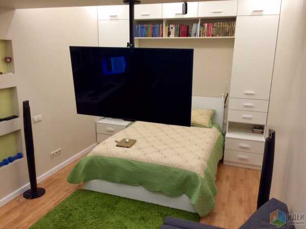И вид со стороны кровати, так мы смотрим телек, когда хотим поваляться на кровати, кронштейн поворотный, и это очень удобно!