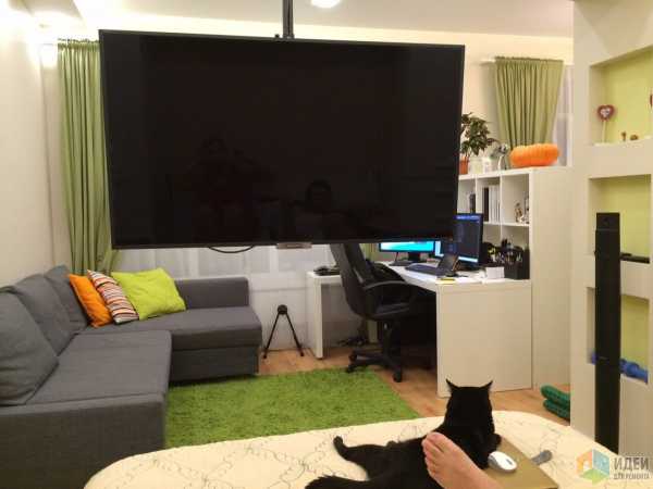 Только теперь мы убрали тумбу и повесили телевизор на поворотный кронштейн.