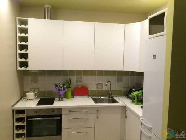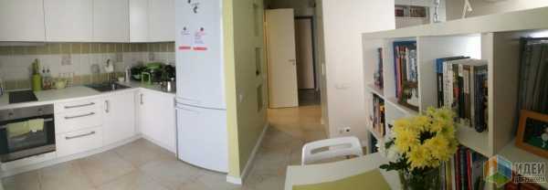 Белая кухня в однокомнатной квартире 36 кв. м. Фото