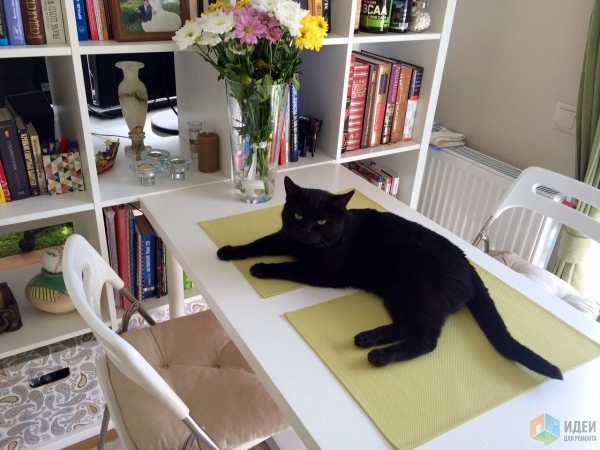 Черный кот совсем не подошел нам по цвету, особенно это стало заметно весной, когда началась линька. Но неожиданно, оказалось, что глаза у него ярко зеленого цвета, по тону один в один такой, как на наших стенах)))