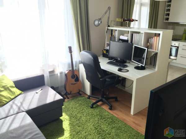 Современному человеку также необходимо место и для работы. Как правило, стол устанавливают возле окна. Это поможет как можно дольше пользоваться естественным освещением.
