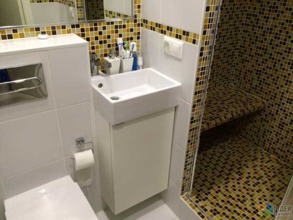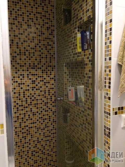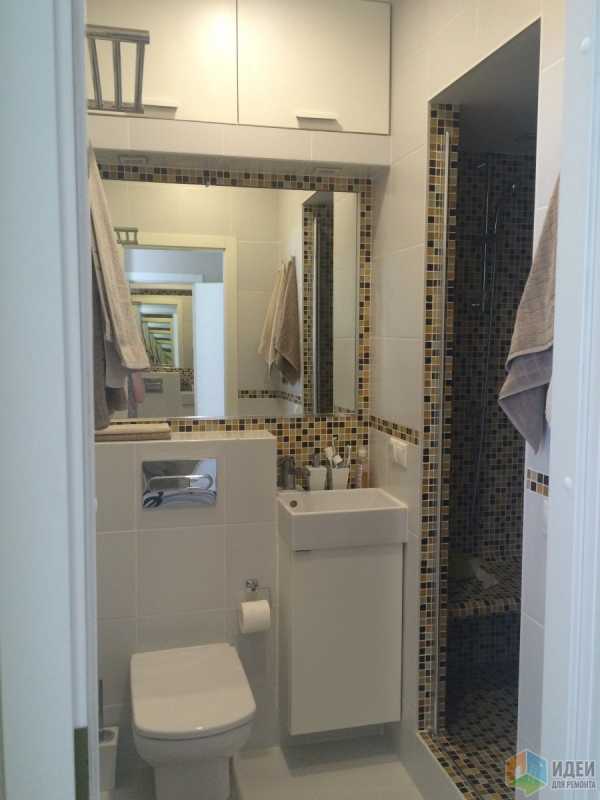Санузел в однокомнатной квартире с душевой кабиной. Фото