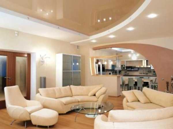 Обеденный участок выделяют отдельным потолочным светильником, у которого есть несколько поворачивающихся ламп, что позволяет сделать световой поток направленным. Стильно выглядит многоуровневая подсветка, которая в конкретное время суток будет освещать необходимые части комнат.