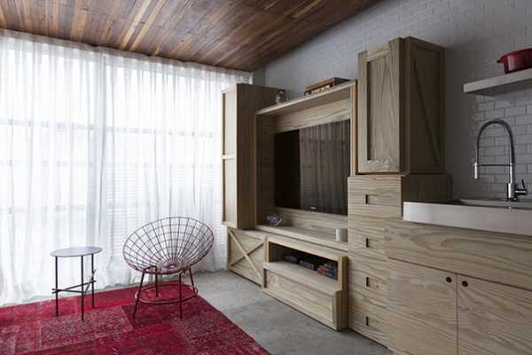 У всех в жизни бывают моменты, которые можно назвать «переходными», — какой-то важный этап жизни остался позади, а новое жизненное направление еще не определилось до конца. Такой момент наступил и в жизни молодого бразильского бизнесмена, жильца небольшой квартиры в Сан-Паулу, о которой пойдет речь: он развелся, переехал в отдельное «холостяцкое» гнездо, в его жизни происходят изменения, пока не ясно, что дальше. Архитектор Алан Чу, приглашенный оформить временную квартиру, решил передать в интерьере настроения заказчика: «мы постарались обыграть в декоре мимолетность момента, показать, что время изменений и самоопределения — это еще и отличный шанс для … импровизации». Результатом импровизации самого Алана стал остроумный современный интерьер квартиры, настолько удобный и позитивный, что хозяин квартиры рискует прижиться здесь всерьез надолго.