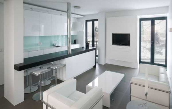 Для квартир-студий для кухонной зоны часто выбирают барные стойки и другие варианты компактной мебели. Создавая же единый интерьер в квартире-студии помните, что вы даже разделяя видимое пространство на определенные зоны все равно должны выдерживать единый стиль, чтобы не смотрелась ваша квартира разрозненно. Да и чувствовать себя вы будете намного комфортнее в помещении, где есть один стиль, где придерживается одна тематика и общая расцветка.