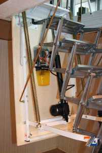 Нередко люки дополнительно оснащаются механизмами особого типа, состоящими из пружин. Подобные приспособления обеспечивают плавное и постепенное закрытие (открытие) лесенки, ведущей на технический этаж.