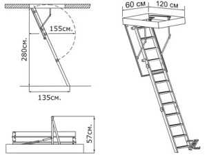 Но какую бы конструкцию вы не выбрали, главное – правильно рассчитать габариты лесенки и проема. Иначе ваша лестница просто не уместится на люке. Выше приведены оптимальные размеры коробки люка и габаритов лестничной конструкции. Если вам нужна стремянка-трансформер для холодного чердака, то лучше выбрать модель с утепленным люком.