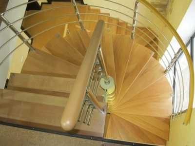 Довольно популярной является винтовая компактная лестница. Такие конструкции очень часто встречаются как в частных домах, так и в квартирах. Удобство её использования состоит в том, что при соблюдении норм эргономики вы получаете возможность подняться на второй этаж практически в условиях вертикального расположения ступеней. Это значительно экономит место, не создавая мертвых зон под ступенями.