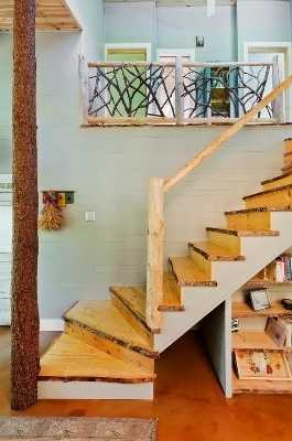 Самым миниатюрным вариантом, пожалуй, является раскладная лестница. Она больше подходит для мансард и чердачных помещений. Для частого использования предпочтительнее винтовые и маршевые модели. Приспособить можно даже одномаршевые конструкции. Довольно оригинально выглядит вход на второй этаж с моделью «гусиный шаг». Экономия места заключается в уменьшении количества ступеней, соотношения между проступью и подступенком, а также увеличении уклона.