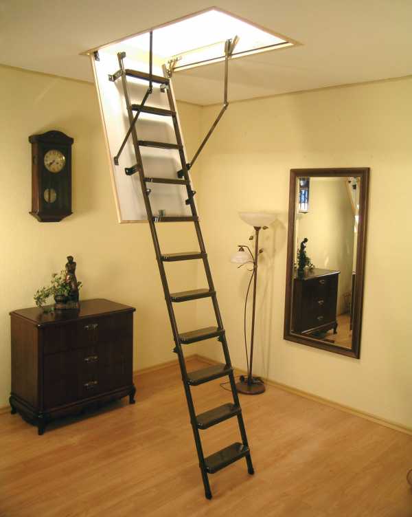 Для обслуживания чердачных помещений можно использовать раскладную лестницу