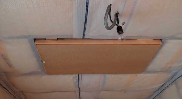 - Делаете в потолочном перекрытии люк. Его длина и ширина должны быть примерно на 6–8 мм больше аналогичных параметров изготавливаемого сооружения.
