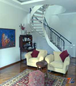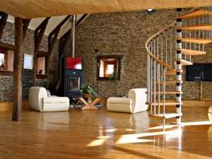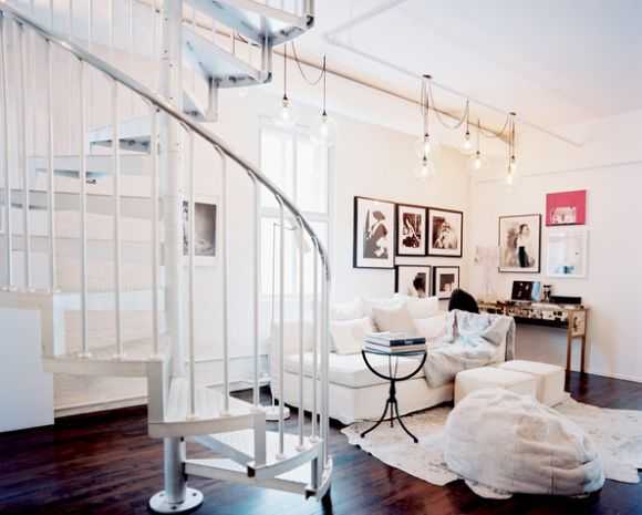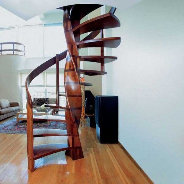 - Лестница винтовая. Довольно интересна с дизайнерской точки зрения, однако о ее удобстве говорить не приходится. Во-первых, по ней зараз сможет подняться только один человек. Во-вторых, для пожилых людей и детей она совершенно не годится. И, в-третьих подняться по ней с габаритным предметом, это все равно что «пройти по канату под куполом цирка».