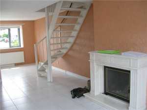 - Первый вариант предполагает размещение лестницы сразу рядом с входом в гостиную вдоль стены. Абсолютное большинство специалистов сходятся во мнении, что это лучший вариант, так как эффективно используется пространство у входа, кроме того квадратные метры тратятся в минимуме, что очень хорошо для небольших комнат.