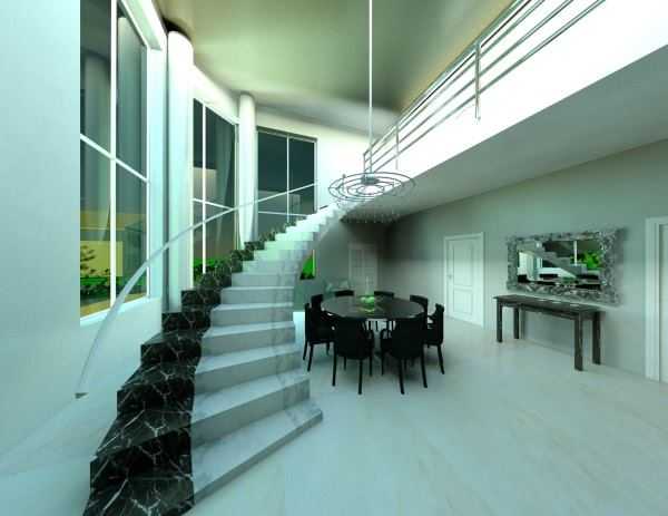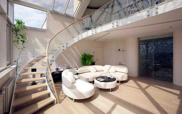 А эта изогнутая лестница предаёт помещению стиль нео-модерн.