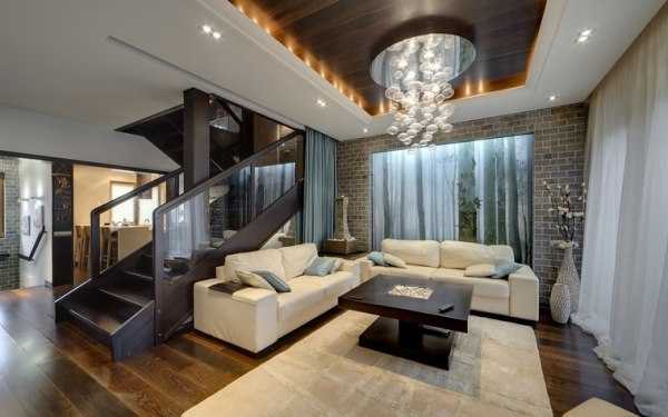 Нельзя сказать, что для опытного дизайнера оформление лестницы это большая трудность, напротив специалисты проявляют максимум фантазии, реализуя в этом элементе интерьера самые креативные художественные замыслы. Благодаря их стараниям появилось огромное количество самых разнообразно оформленных лестниц, из которых вполне можно выбрать вариант достойный вашей комнаты для приема гостей. В рамках данной статьи мы подробно поговорим об убранствах гостиных комнат с лестницами, снабдив вас самой необходимой информацией по этой теме.