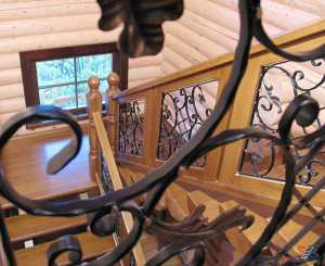 - Прекрасно и стильно смотрится также кованая лестница. Каждый ее элемент, включая опоры, украшается великолепными коваными деталями. Для интерьера в стиле модерн это очень неплохой вариант.