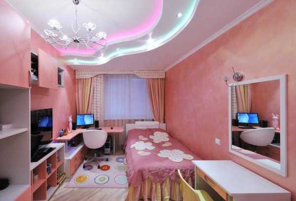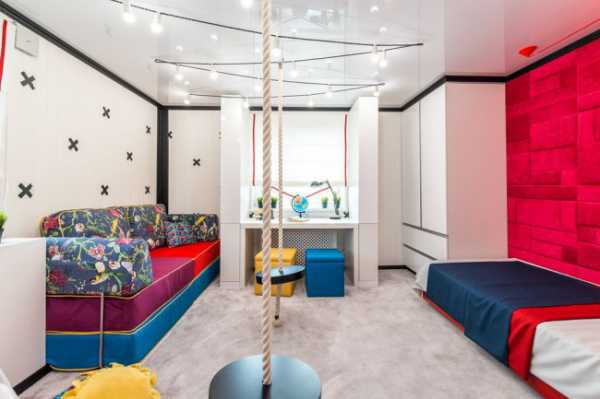 - непосредственное участие в функциональном зонировании помещения — при помощи организованного освещения и особенностей фактуры можно сделать тот или иной акцент, к примеру, выделить направленным светом игровую зону или же красиво подчеркнуть струящиеся шторы, ниспадающие с закрепленного в нише карниза;