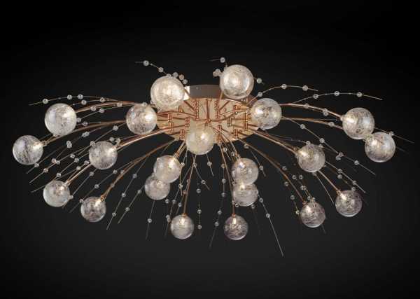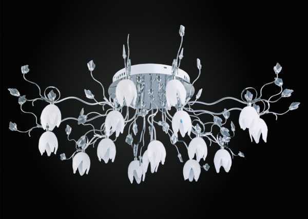 По своей сути натяжной потолок – это просто ткань или пленка, которая натянута (закреплена) на специальном профиле. Она очень чувствительна к нагреванию, при температуре выше 60 °С она становится эластичной, начинает деформироваться и растягиваться. Поэтому подбор люстры для натяжного потолка – это прежде всего выбор модели с максимально безопасным расположением лампочек. Кроме того, следует учесть и несколько других факторов: