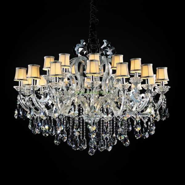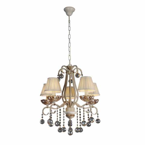 Такой классический вид люстр может быть разбавлен декоративными элементами — абажуром, бусинками, цветным стеклом и т. д.