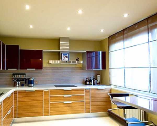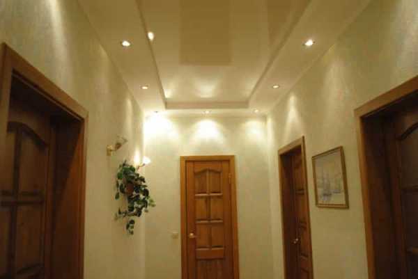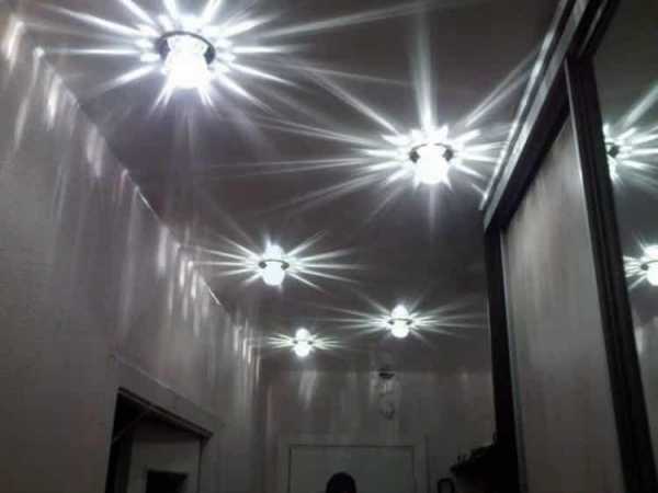 Альтернативный вариант – глянцевый потолок, который «удваивает» за счет переотражения количество ламп. Поэтому вместо шести ламп, направленных вниз, можно установить три, направленные вверх. Но при этом использовать лампочки с небольшим тепловыделением.