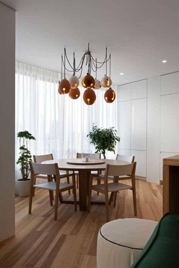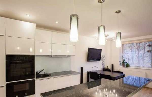 Высокие глянцевые потолки обязывают установку лампы на длинном проводе