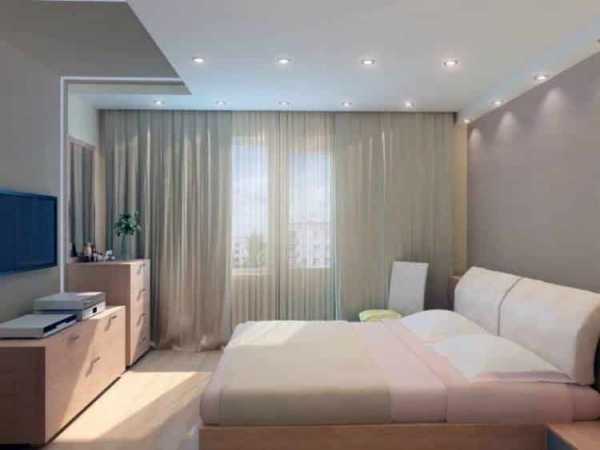 - не используйте в невысоких комнатах комбинацию центральной люстры с симметрично расположенными точечными светильниками — это вызовет эффект перегруженности, лучше всего подобрать на потолок красивый светлый цвет и обойтись либо одной люстрой, либо расположенными по периметру спотами;