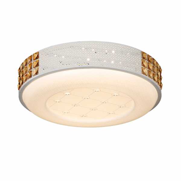 - Для модели в форме тарелки важно отсутствие основания из металла. Во включенном состоянии металлический корпус люстры подвержен интенсивному нагреву, что представляет угрозу целостности натяжного потолка гостиной.