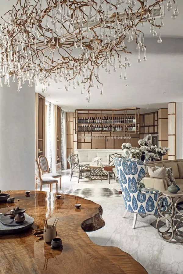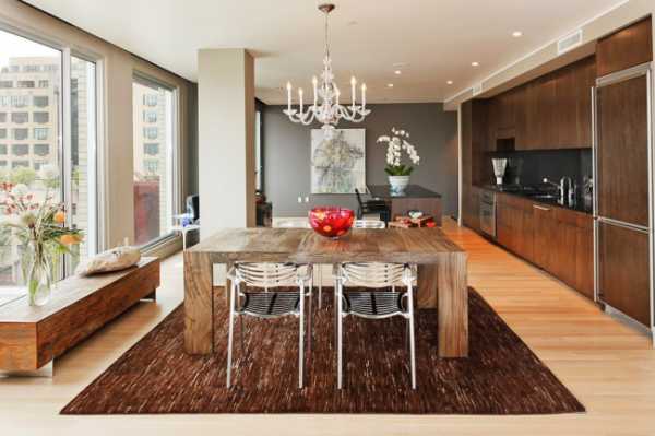 - Гостеприимную и радушную атмосферу в гостиной способна создать люстра, размещенная над столом, при условии, что ее рожки направлены на обеденную зону.