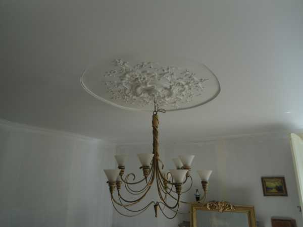 Люстра на натяжном потолке, закрепленная с помощью монтажной планки