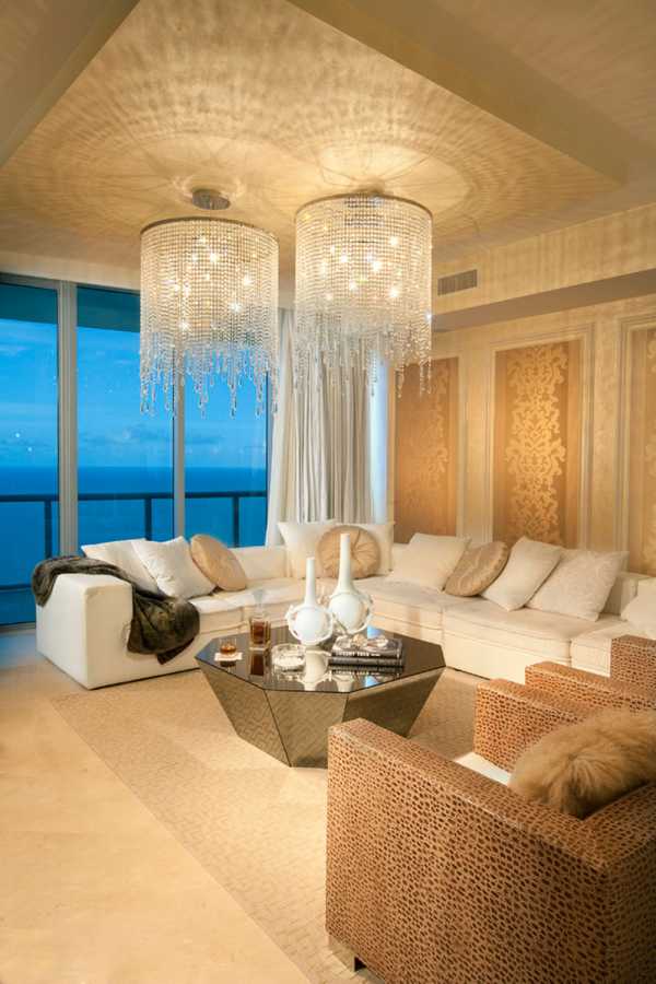 Оригинальные люстры в гостиную под натяжной потолок изображены на следующих фото: