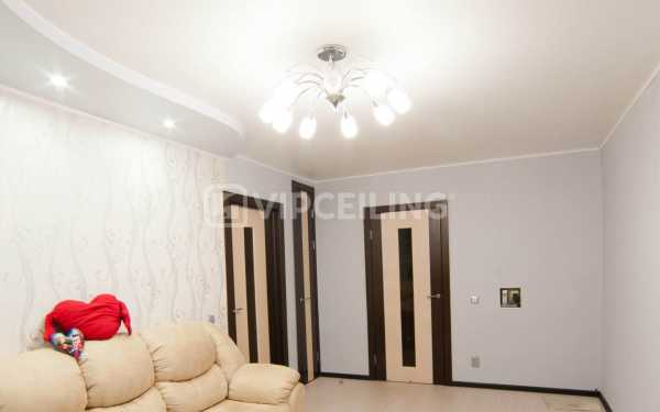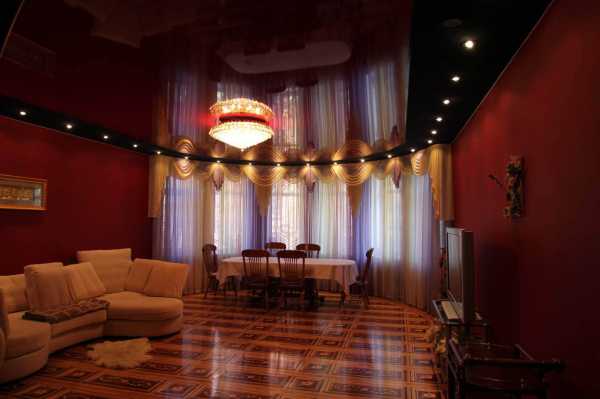 Наша небольшая подборка фото натяжных потолков с несколькими уровнями в зале с люстрой и светильниками в зале. А еще больше примеров с натяжными потолками вы можете посмотреть в статье: «Натяжные двухуровневые потолки — 100 фото с лучшими идеями».