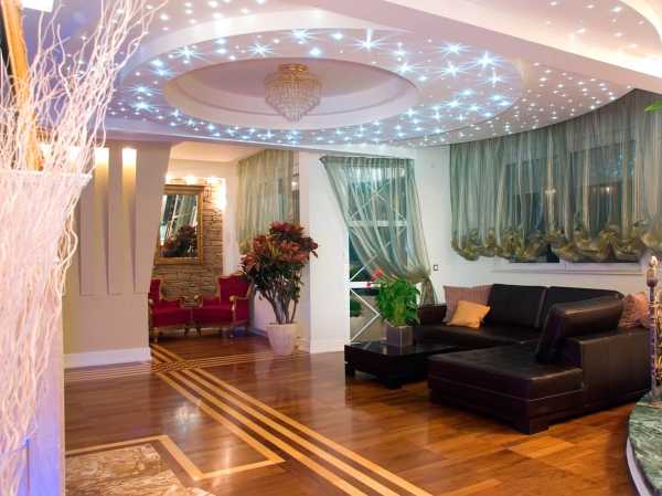 Кроме того в зале по вечерам собирается вся семья, активно отдыхает, смотрит телевизионные передачи или же устраивается поудобнее за просмотром фильма на домашнем кинотеатре. Уже исходя из этого, можно сделать логичный как гром после молнии вывод: игнорировать потолок как один из самых эффективных инструментов выразительности нельзя ни в коем случае.