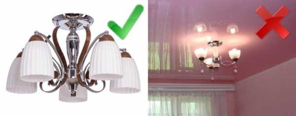 Подбор люстры для натяжного потолка – это прежде всего выбор модели с максимально безопасным расположением лампочек.