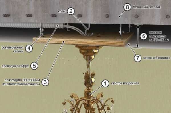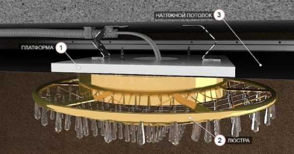 Схема установки люстры на натяжной потолок с помощью монтажной планки