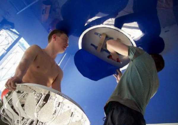 - На пленку приклеивают термостойкое пластиковое кольцо, а на места прикручивания планки дополнительно клеят кусочки пластика, чтобы при вкручивании саморезов не лопнула и не порвалась пленка.