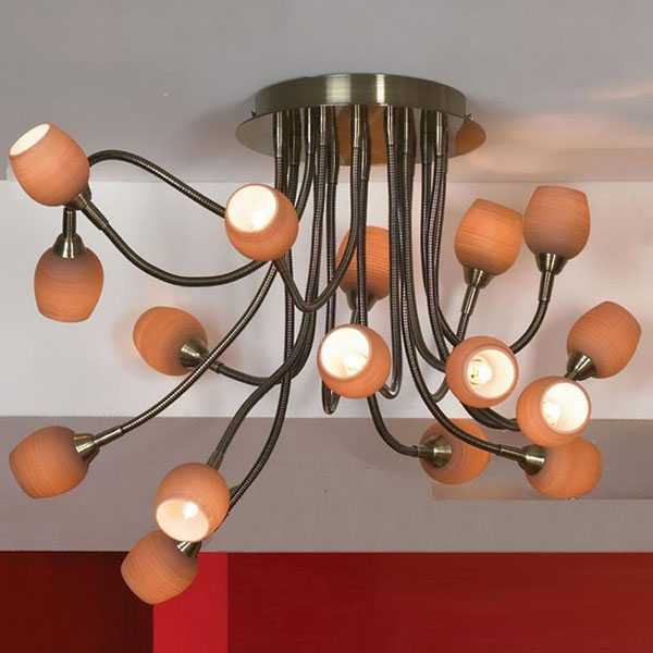 - Рожки люстры, направленные вверх, могут стать причиной появления на поверхности потолка черных кругов. Предпочтение отдают конструкциям, где лампочки в рожках направлены в стороны или вниз.