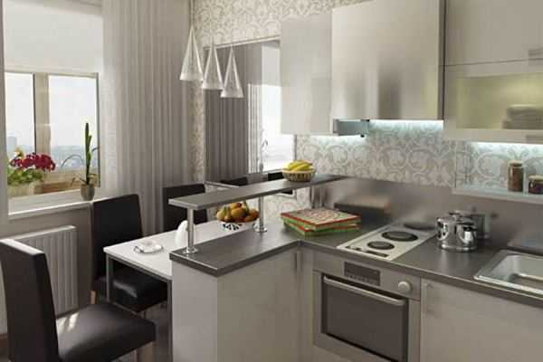 Наиболее современными идеями дизайна малогабаритной кухни фото 2015 являются два варианта – минимализм и модерн. В частности, эти два стиля дополняют друг друга и отличаются от других тем, что можно использовать минимальное количество вещей в квартире и на кухне, при этом визуально расширяя пространство.