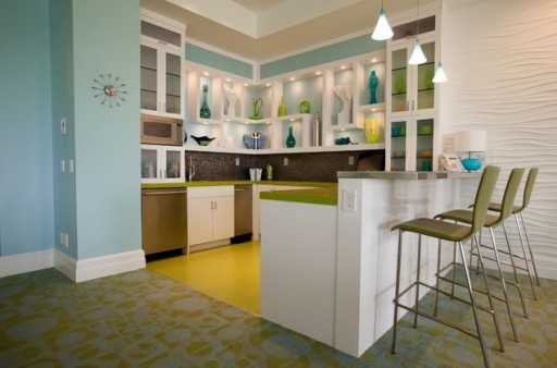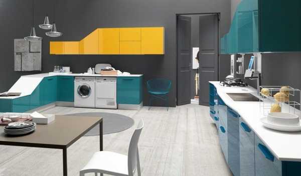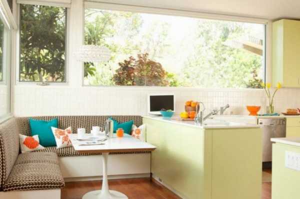 В современный дизайн кухонь вошли сочные оттенки зелёного, оранжевого, жёлтого и розового цветов
