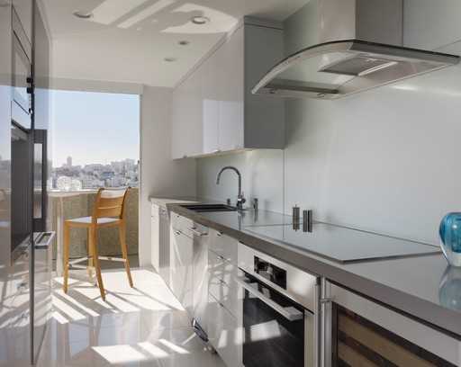 Небольшая кухня в стиле модерн не может похвастаться обилием декоративных безделушек, но выглядит стильно и респектабельно
