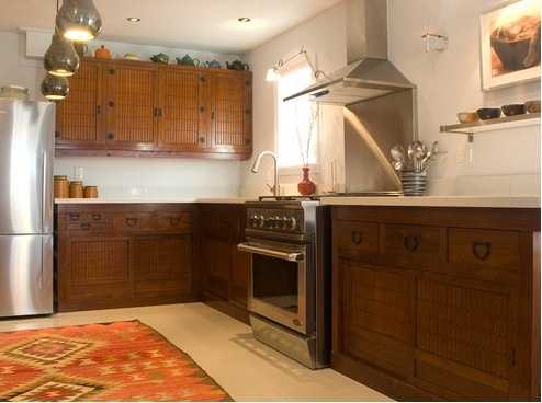 Кухня средних размеров в японском стиле позволяет создать оригинальный интерьер при сохранении максимальной функциональности