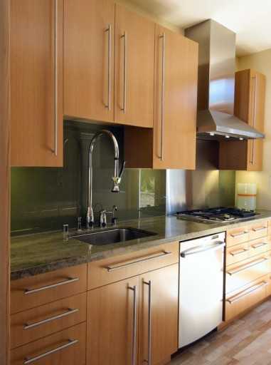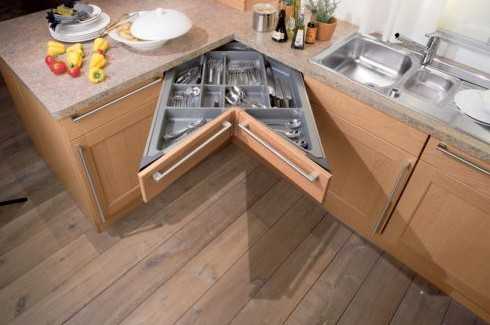 Сделать это не сложно: существуют выдвижные шкафы для различных приправ, соусов, масел, отделы для ножей. Независимо от того, большая кухня или маленькая, оформлена в светлых тонах или темных, строгая ли, простая — важен минимализм. И не забудьте о том, что столешница вовсе не предназначена для хранения на её поверхности всего, что может понадобиться в процессе готовки! Чем меньше вещей на столешнице, тем лучше будет выглядеть кухня.