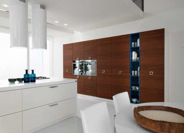 Самые смелые идеи дизайна маленькой кухни могут быть реализованы при помощи встроенной техники и мебели. Такое помещение приобретет облик жилой комнаты с единым дизайном, а не набором различных предметов. Их оформляют в общем стиле для создания уютной атмосферы жилого помещения. Это также позволит поместить всю технику, не загромождая рабочее пространство. Помимо техники, в маленькие деревянные кухни встраивают различные функциональные элементы – выдвижные столы, ящики, подставки для ножей, корзины для овощей и фруктов.