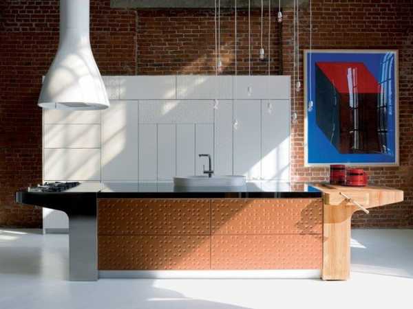 Для рабочей зоны можно подобрать различные необычные конструкции, такие, как выдвижные столешницы или барные стойки.
