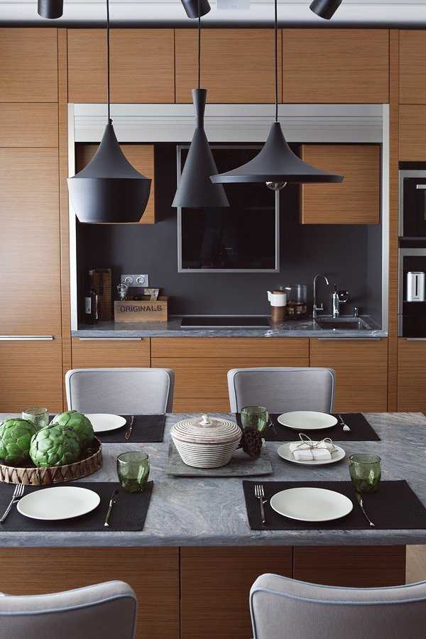 Современность в интерьер кухни внесёт не только удачный ремонт или новая мебель, но и объединение её с гостиной, плавный переход — к примеру, через коридор в библиотеку, — и многое другое. Главное — полёт фантазии и желание сделать квартиру новой, не похожей на другие.