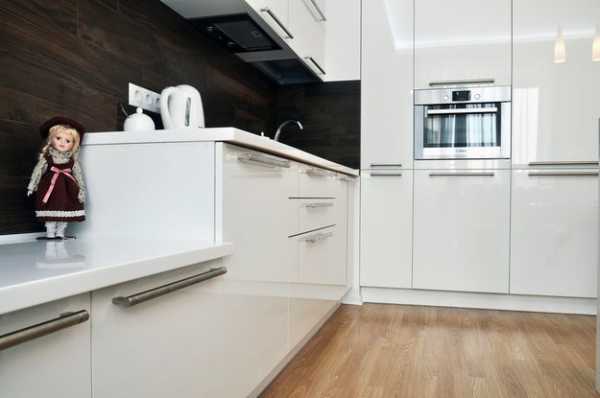 Для начала необходимо решить вопрос фасада кухонной мебели. Лучший вариант – это белый глянец. Даже при небольших размерах квартиры это будет смотреться выигрышно: лёгкость, воздушность, свет – именно то, чего многие добиваются. Однако фасады бывают разные, и можно смело экспериментировать. Металл, дерево, камень, различные цвета — главное, чтобы кухня получилась уютной и комфортной, и нравилась в первую очередь хозяевам квартиры.